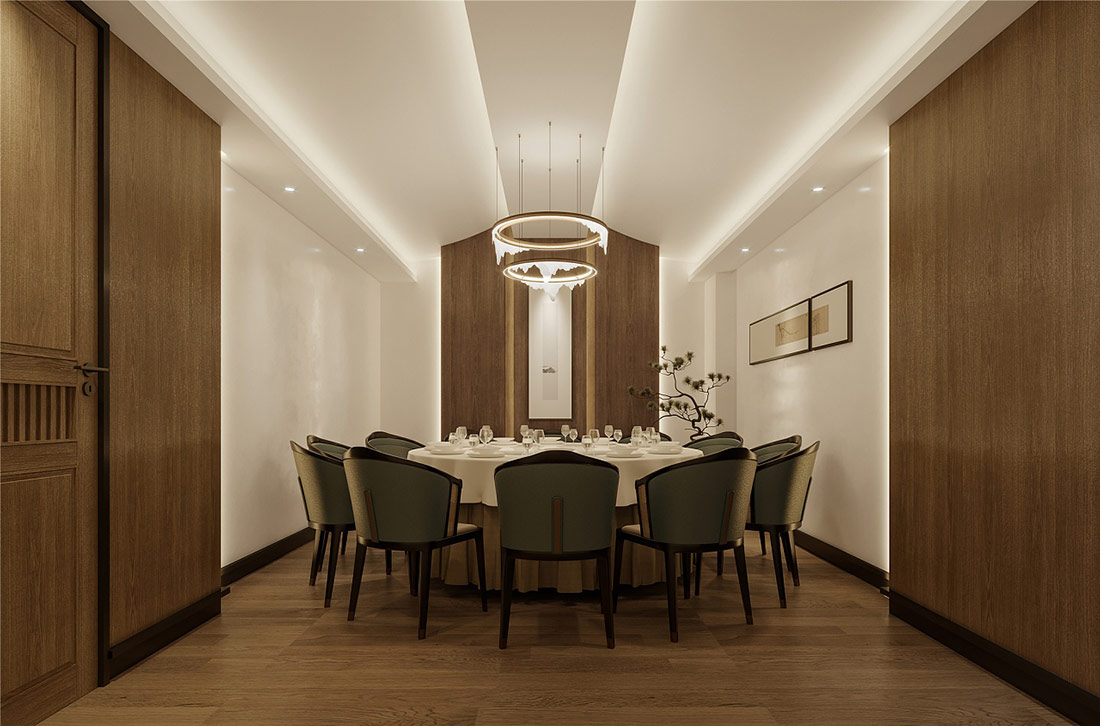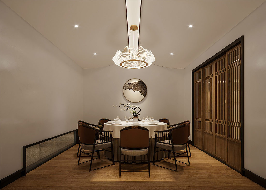 設(shè)計理念: ??濟(jì)南餐飲裝修效果。其裝修效果圖體現(xiàn)了濃郁的中式風(fēng)情,采用木質(zhì)材料和精致雕花裝飾,營造出溫馨典雅的就餐環(huán)境。整體色調(diào)以暖色為主,搭配古典家具和藝術(shù)品,讓顧客在品嘗美食的同時,也能感受到中華文化的博大精深。