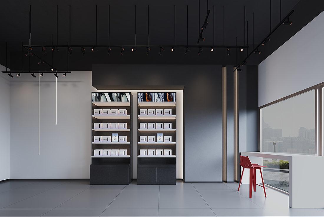 小型商鋪裝修效果追求精致與實用并存??臻g雖有限,但通過巧妙布局與色彩搭配,營造出寬敞明亮的購物環(huán)境。整體顏色使用白色和黑色相互混搭。墻面與地面選用耐磨易清潔材料,保持店鋪整潔。商品展示區(qū)設(shè)計醒目,利用燈光與陳列技巧吸引顧客目光。整體裝修風(fēng)格與商品定位相符,營造出舒適愉悅的購物氛圍,提升顧客體驗與店鋪形象。