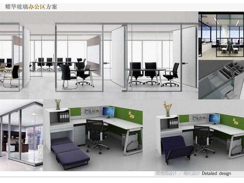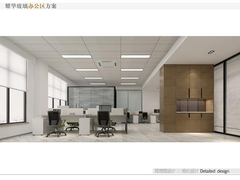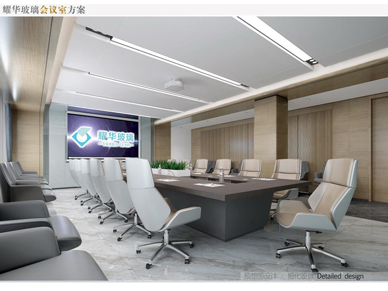 耀華玻璃辦公區(qū)裝修效果注重體現(xiàn)了現(xiàn)代與實(shí)用性的結(jié)合。辦公空間寬敞明亮,采用高品質(zhì)材料打造,使用耀華玻璃作為隔斷墻提升了整體美觀度,而且采用落地窗可以增強(qiáng)自然采光效果。會議室空間足夠大,利用了耀華玻璃進(jìn)行隔斷,從而達(dá)到了隔音效果好。營造出高效、舒適的辦公環(huán)境。
