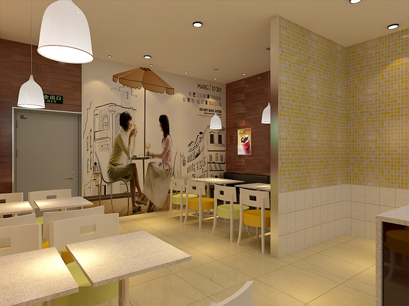 濟(jì)南奶茶店甜品店裝修設(shè)計(jì)-芒果主題飲吧裝修效果溫馨而甜蜜,以暖色調(diào)為主,營造出浪漫氛圍。店內(nèi)燈光柔和,照亮每一款精致甜品與飲品,令人垂涎欲滴。墻面裝飾甜蜜主題貼紙,增添趣味性。座位區(qū)布局舒適,適合朋友小聚或情侶約會,營造輕松愉悅的用餐體驗(yàn)。整體設(shè)計(jì)既符合年輕人的審美,又充滿甜蜜幸福感。