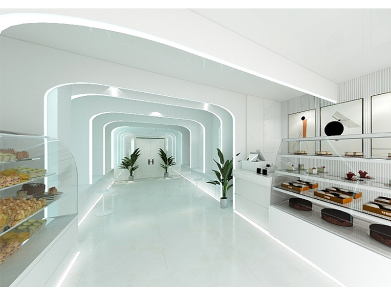 濟(jì)南紅玫瑰烘焙坊蛋糕店裝修效果注重營造溫馨、干凈且富有吸引力的氛圍。店內(nèi)色彩搭配以米白色色調(diào)為主,營造出一種舒適宜人的環(huán)境。燈光設(shè)計(jì)則強(qiáng)調(diào)柔和與明亮,不僅照亮了整個(gè)空間,還突出了蛋糕的精美與誘人。