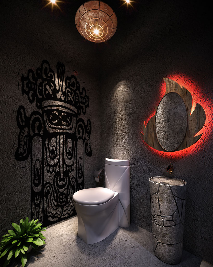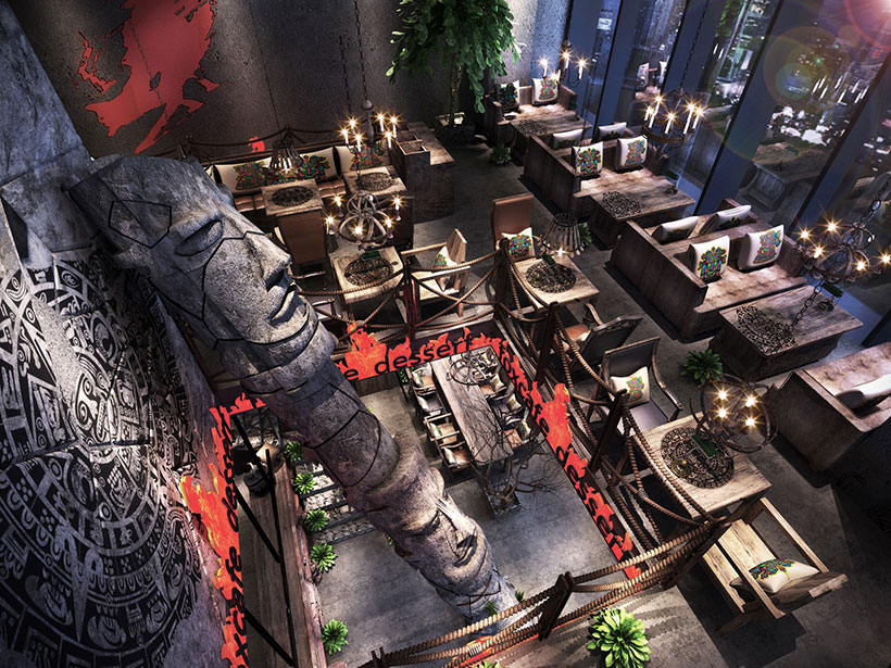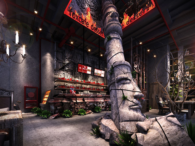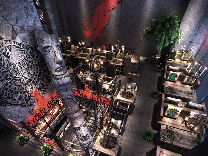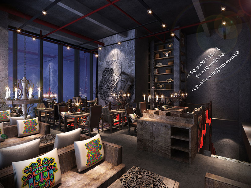 運(yùn)用破碎的瑪雅建筑紋理作為主元素貫穿整體空間設(shè)計(jì),將消失的瑪雅文化融入到現(xiàn)代主義的設(shè)計(jì)風(fēng)格里,用藝術(shù)化自然化的設(shè)計(jì)手法將簡(jiǎn)陋的空間置換為國(guó)際潮流空間設(shè)計(jì)風(fēng)尚。設(shè)計(jì)師依舊沿襲 簡(jiǎn)的理念,僅用一根從底層直穿二樓的人面雕塑就巧妙規(guī)避了空間的局促感,成為整體空間設(shè)計(jì) 凝練的一筆。
